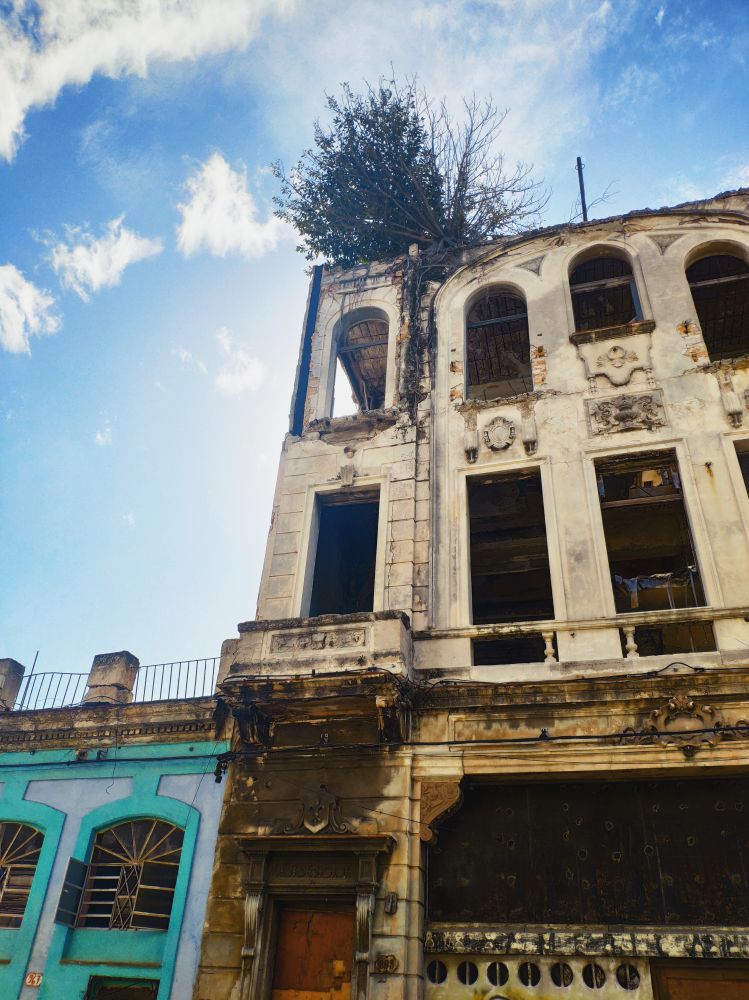 对面的房屋原来是这样的,破败的居然长出一棵树。
