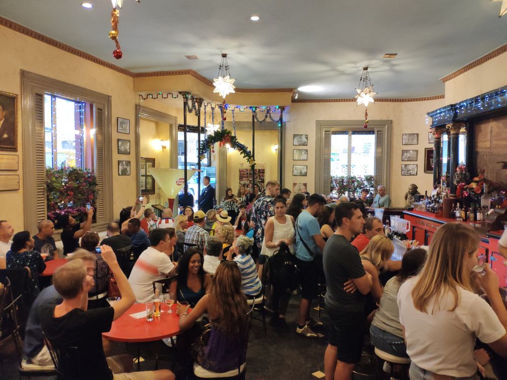 进了小弗罗里达酒馆(El Floridita),已经站无虚席,连海明威的铜像都接近不了,点一杯他老人家最爱的黛琪莉(Daiquiiri)简直就是痴心妄想,一家三口悻悻离开,什么时候人少再来。