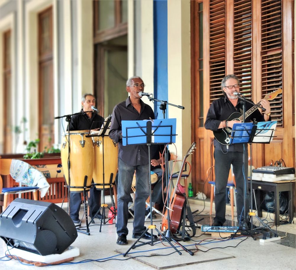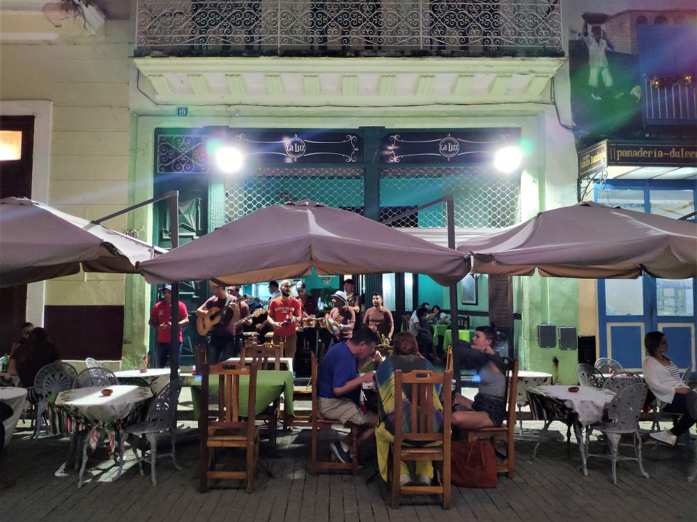 正好Hotel Telegrafo有室外的桌椅,还有一个现场乐队表演,找了张桌子坐下,除了进餐喝咖啡,也能听歌还可以欣赏色彩艳丽的老爷车,太完美了!