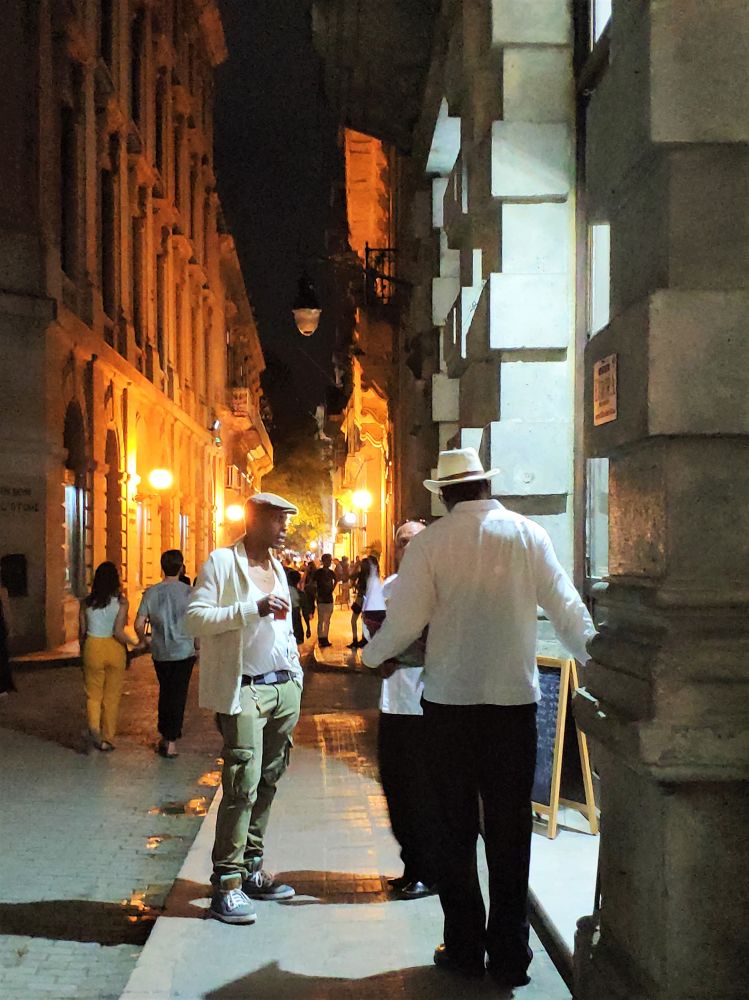 出门后我们就顺着Obispo往东逛开了。窄窄的街两边餐厅酒吧旅游品点鳞次栉比,我们是下午快五点开始逛的,街上的游人没有想象的多。好多餐厅都有现场乐队助兴,而且都是不插电的。餐厅的主菜价格大概在5块钱左右,我们昨天的午餐(在自由酒店躲雨)和今天中午(为了边听乐队边看广场上的老爷车)的午餐因为在星级酒店吃的,基本上翻倍了。