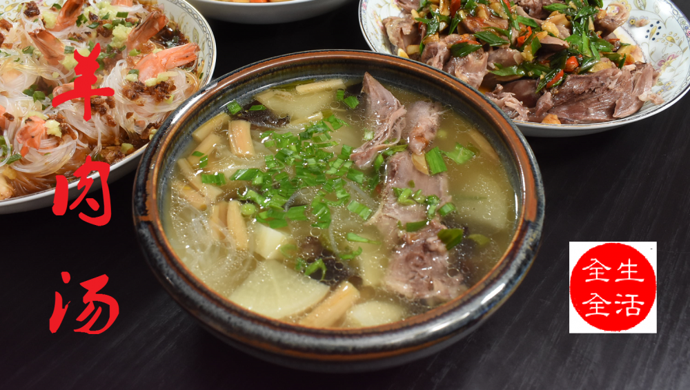 炖好后,羊腱撕成大块羊腿肉,羊肉汤加上粉丝黄花菜木耳,味道别提有多美了。
