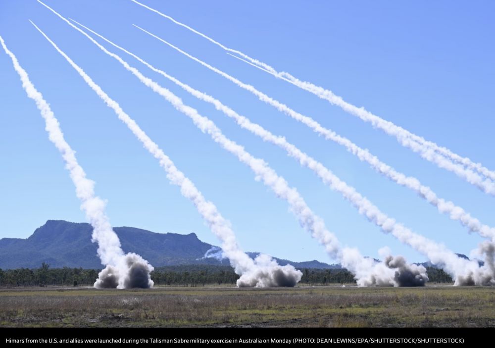 澳大利亚罗克汉普顿——周一(七月十四日),炮兵、火箭发射器和自行榴弹炮在澳大利亚北部的一个训练区开火,开启了美国和18个盟友之间为期三周的军事演习。这次被称为《护身符军刀》的两年一次的演习旨在向中国发出一个信息:美国及其合作伙伴准备共同应对北京的扩张。北京在亚太地区的影响力范围内,越来越坚定的显示自己的存在和实力。J.B.Vowell中将,美[