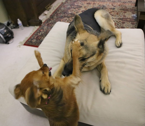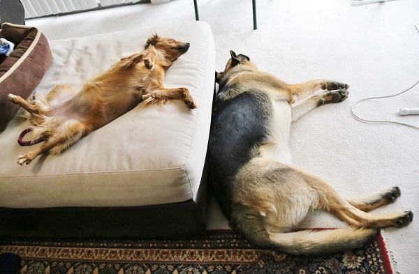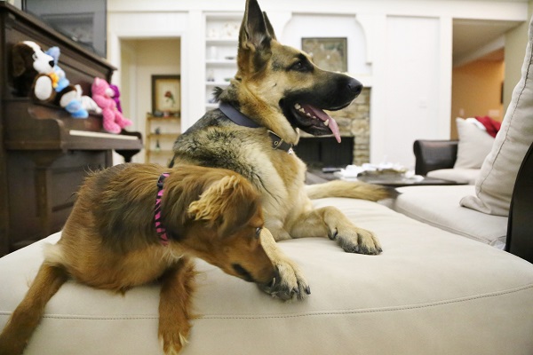 • 一双璧狗,没想到少帅那么魁梧,小辣妹原来长了一副笑笑脸。哈哈,不但上沙发,而且把狗床直接按沙发上,超强! -Churchill- ♀