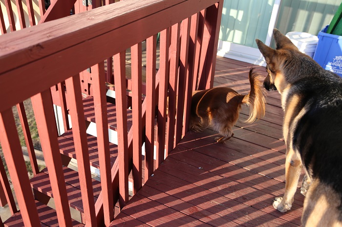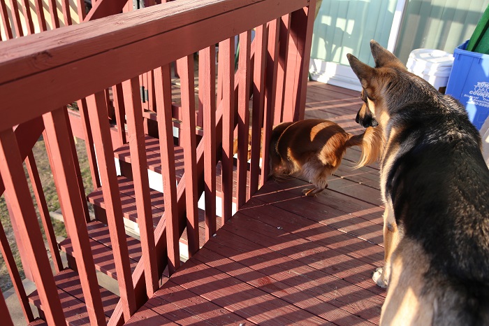 辣妹最拿手的是逃脱术. 会挖,会钻,熟知院子里每一个栅栏板间距宽窄,是否松动,一有情况,立刻钻出去. 有时还会带着少帅出去遛达一圈