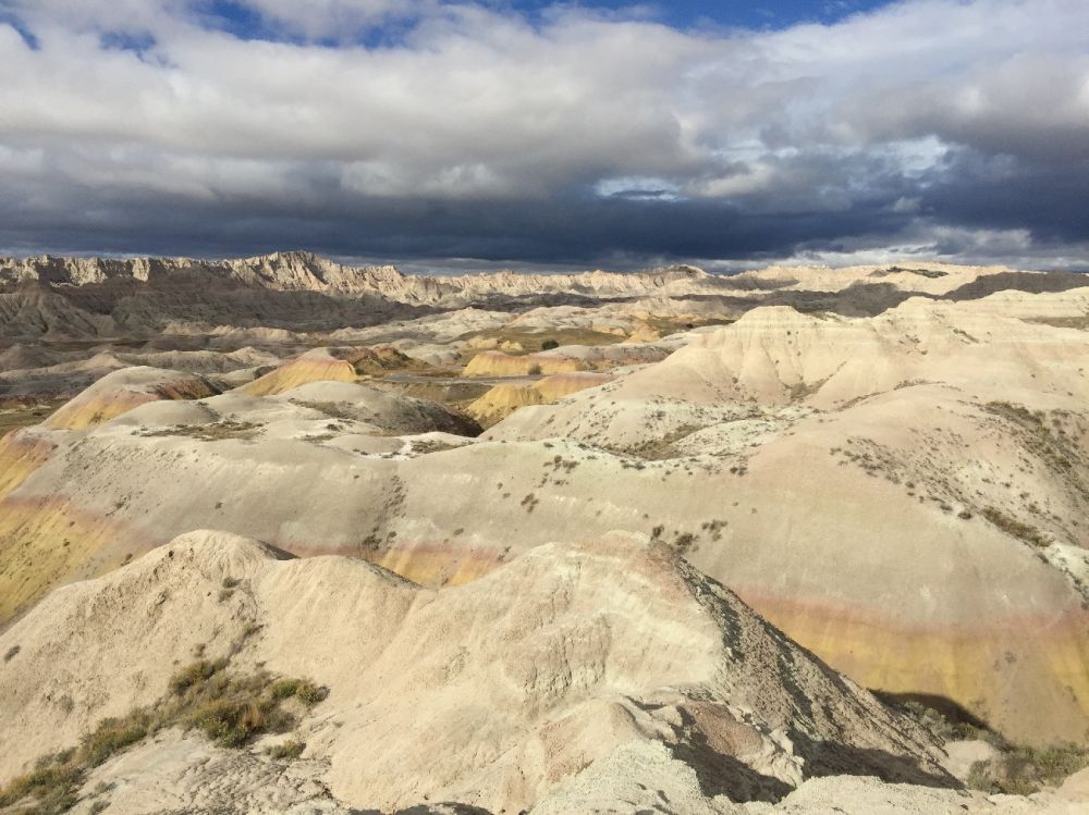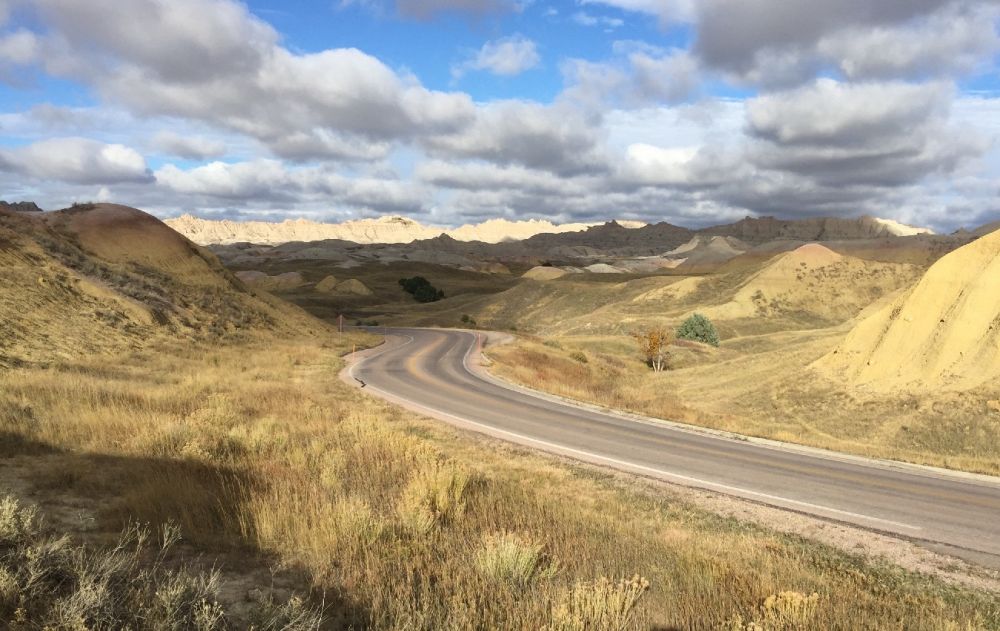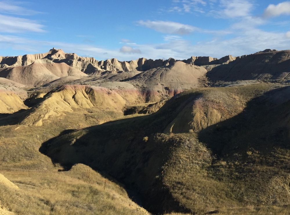 2021年10月30号星期六,Badlands 国家公园。这个时节的劣地国家公园里的早晨,强劲的呼啸风声,吹过谷地,气温在华氏40度左右,让深秋的透凉,穿过皮肤有刺痛的感觉,也让枯黄的草地已经在等待冬天的到来,这样它们就可以进入安静冬眠的状态。