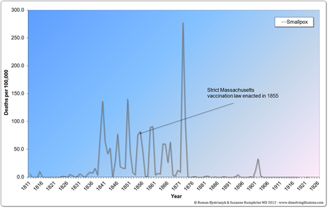 政府通过逐步使用越来越多的力量强制接种疫苗来回应这种怀疑。 1853 年,英格兰强制接种疫苗,1867 年通过了更严格的法律。在美国,马萨诸塞州于 1855 年制定了一套全面的疫苗接种法(这创造了最高法院的雅各布森诉马萨诸塞州案件,这是一个经常被引用的州案件)。 Lemuel Shattuck 在 1856 年的一份报告中强调了接种疫苗的必要性,并推动由波士顿市当局实施挨家挨户接种疫苗,同时还指出:““市政府已经规定,任何未接种疫苗的儿童不得进入波士顿市公立学校。”