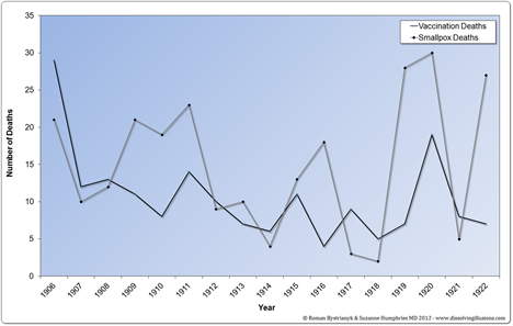 在整体水平上,疫苗伤害很常见。Dissolving Illusions 记述,在英格兰和威尔士,从 1859 年到 1921 年(可能被低估的)疫苗导致的死亡与天花死亡数相似。