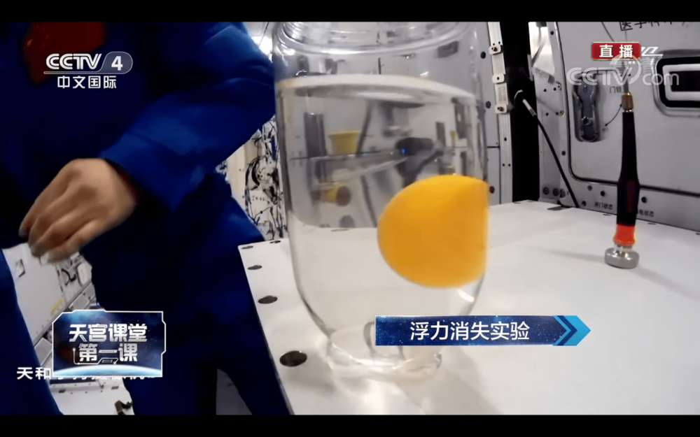 查了下,中国航天部报纸专门有辟谣文章,解释水杯表面有张力,没有扰动的情况下,水会待在杯子里。顺便批判了一下境外势力别有用心。
