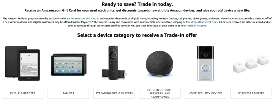 当然你也可以像在eBay上那样,直接在Amazon上卖自己的物品。如果嫌麻烦,就直接用他们家的trade-in,操作简单,两天时间可以搞定。返还的信用分可以直接在Amazon上买你需要的物品。所以,比起其他具体品牌如Dell、Apple、HP的trade-in,获取的信用分更容易支配。