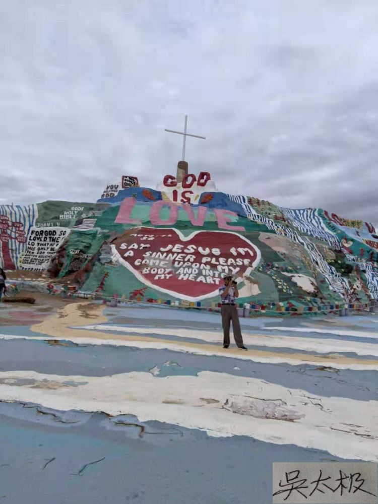 在南加州的东面,有一片似沙漠地带。从棕榈泉市(Palm Springs)开车近一个半小时可达。其间,人,越来越稀少;地,越来越荒凉。却在一个衰败的小城附近的山坡上,出现了一个“神就是爱”的”主题公园”。据介绍,这个主题公园基本上是由一个信奉上帝的人,名叫伦纳德.奈特(Leonard Night)花了20年的时间,充分利用各种费弃物建造起来的。这个公园告诉我们,人的信仰带来的精神力量,确实可发挥出巨大的创造力。这是一个世界独一无二的精神乐园。