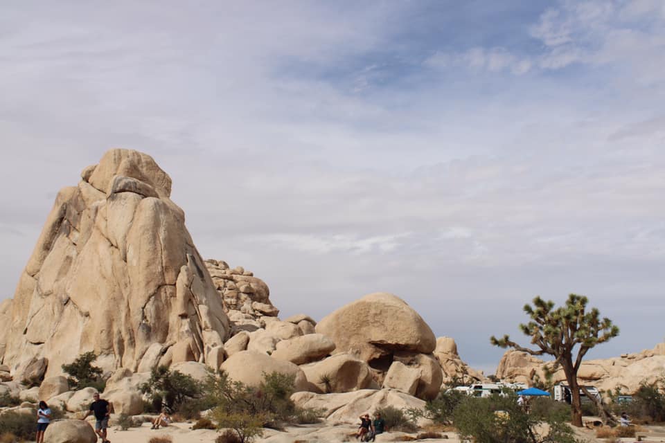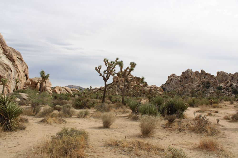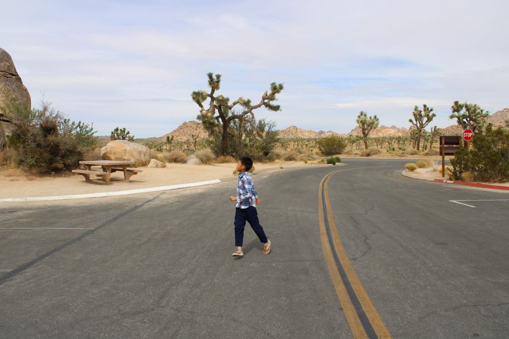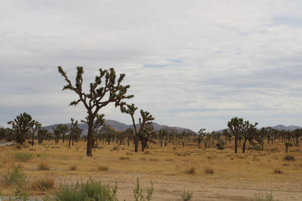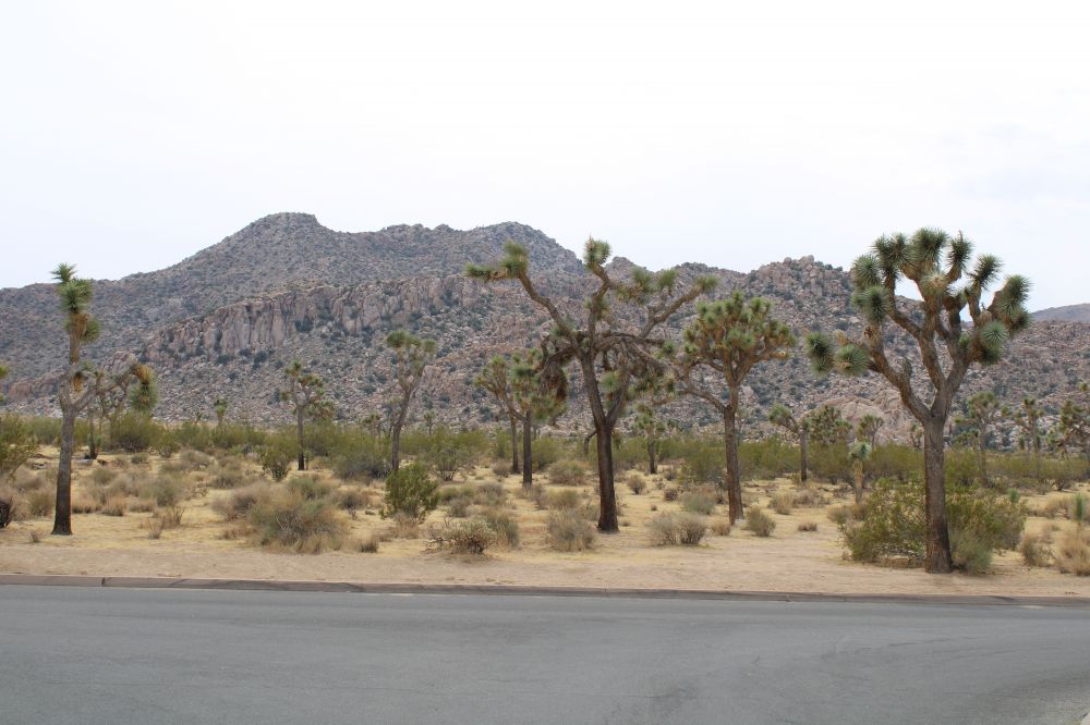车进该公园,哇,那真是一个奇特的世界。除了门岗与道路,就没有什么人的做作,几乎呈现出来的是原装的大自然。 地上是沙与细石的混合,处处可见的山丘,也是光石所堆积起来的,偶尔有一巨石,竟成了人们攀岩的好场所。在这几乎无土,又严重缺水的环境里,约书亚树却活得滋润,繁茂,并昂起它的四肢,绝不向恶劣的环境低头。这一特质像极了圣经故事中高举双手向天空祈祷的约书亚,树名由此而来。其实约书亚树也可给人带来某些精神层面的启示,昂起头颅做人。也许这才是约书亚树国家公园的最大意义吧。