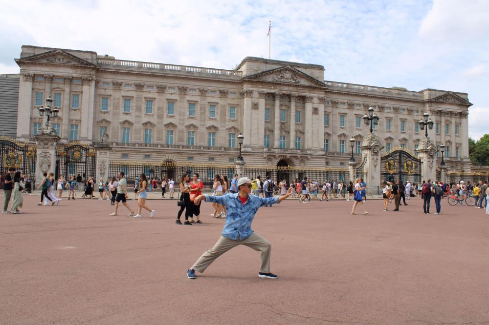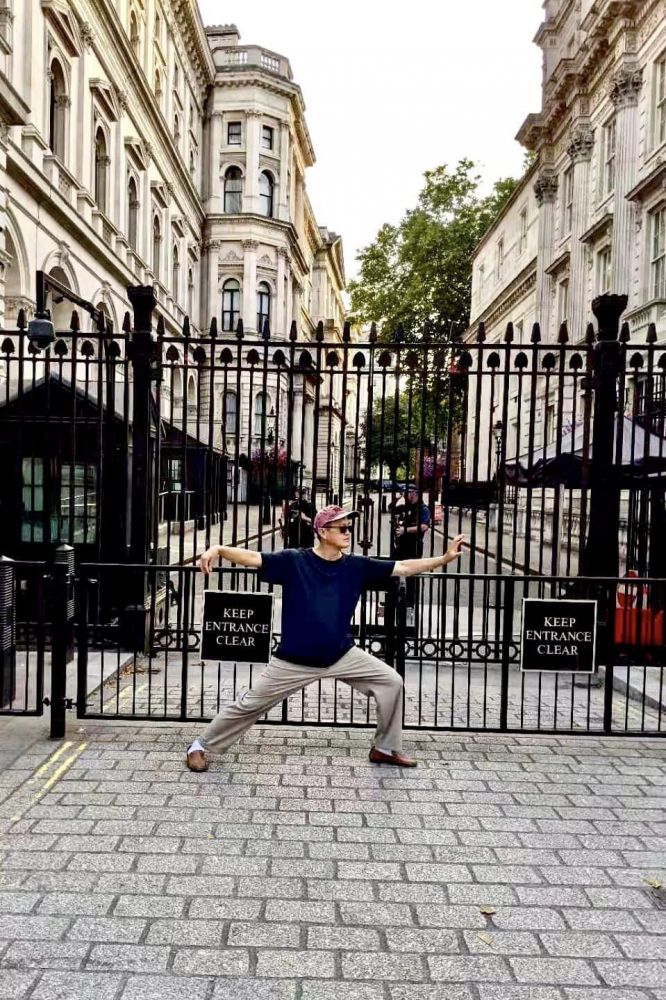 无法进去近距离与唐宁街10号留个影,那就在铁门外拍一张太极单鞭招式作留念吧。