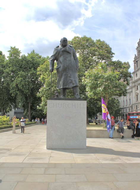 当看到邱吉尔铜像,一时还不敢恳定是他,怎么与我印象中的邱吉尔不一样呢?况且该铜像给游人的第一眼,