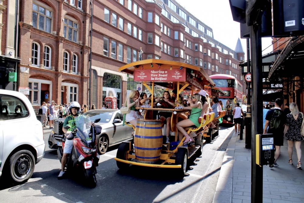 机会七转八拐地欣赏到了伦敦街上那种轻松自在的夏日气氛。各种街景汇在一起,构成了一幅色彩多姿的都市画卷。