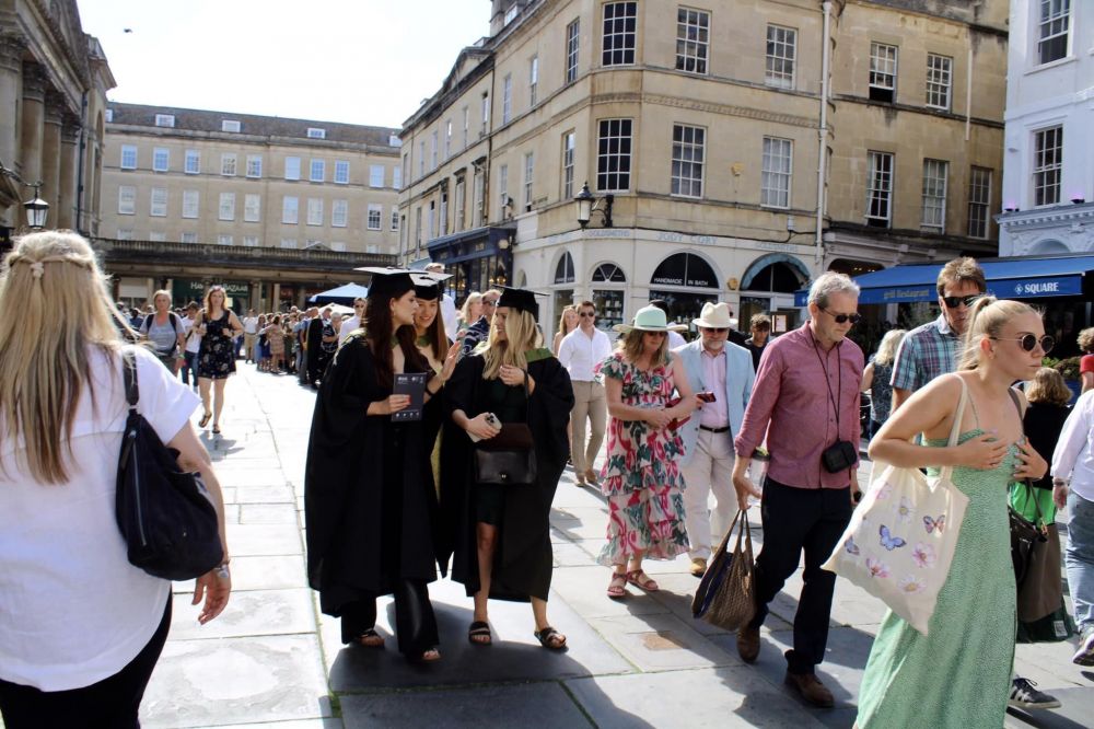 下午一到巴斯城,就碰到当地的一所大学刚举行了毕业典礼。都下午5点过了,古老的巴斯修道院前排着长长的队。也许是毕业生的家长与亲友,