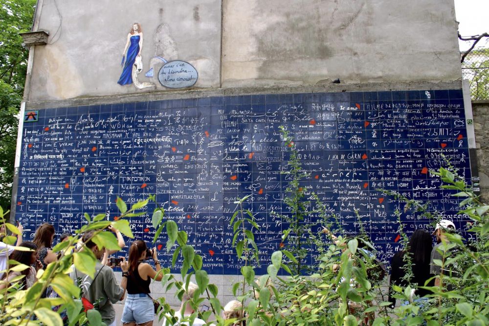 曾经,柏林有柏林墙;现在,中国有防火墙;过去,现在和将来巴黎有“爱墙”。由511块,规格为21x 29.7厘米的深蓝色的长方形瓷砖贴成的约40平方米的这堵墙上,用311种语言和方言的手写笔迹写满了同一句话。这句话在中文和英文里,都只是三个字。你能找到或发现这三个字吗?
