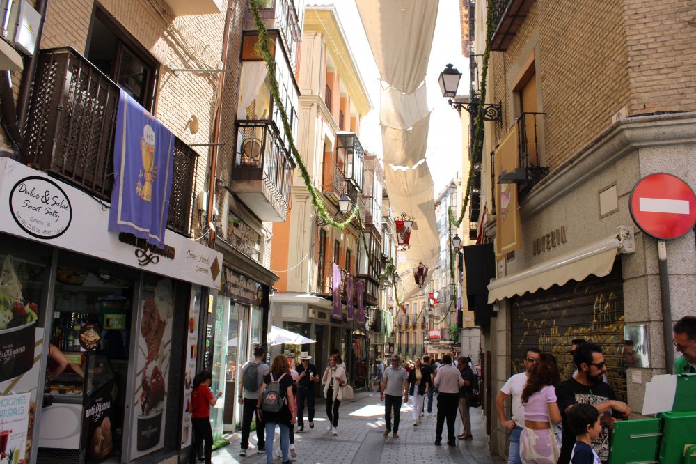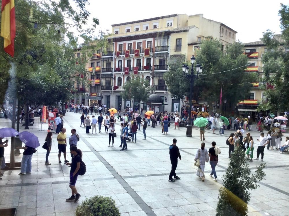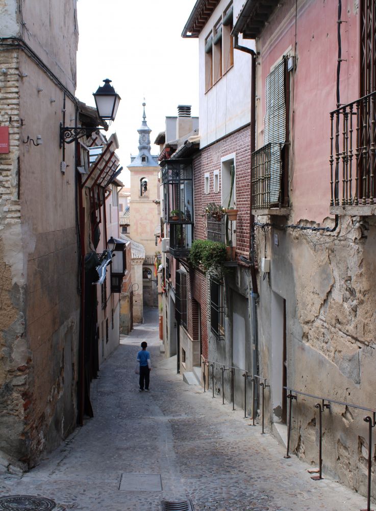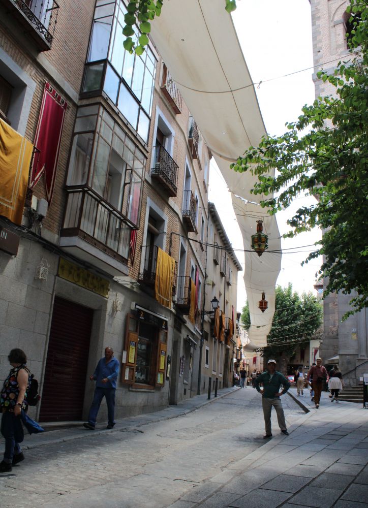 这个城市还有一个独特之处,就是当你进入市区里后,你很快就会失去方向感,不知东西南北了。它里面的道路窄得只能单行小车,你左转右拐,几乎全是相似的房屋和窄路。由于无法看远,逛一会儿就好像被淹没在小街细巷里了,无法自拔。问路人,要么语言不通,要么与我们一样,也是迷路的游人。最后问到一位歺馆人员,他刚好懂英文,才在他的指引下,走出了迷宫式的托莱多里的小街细巷,来到主街的广场上,等候游车的到来。