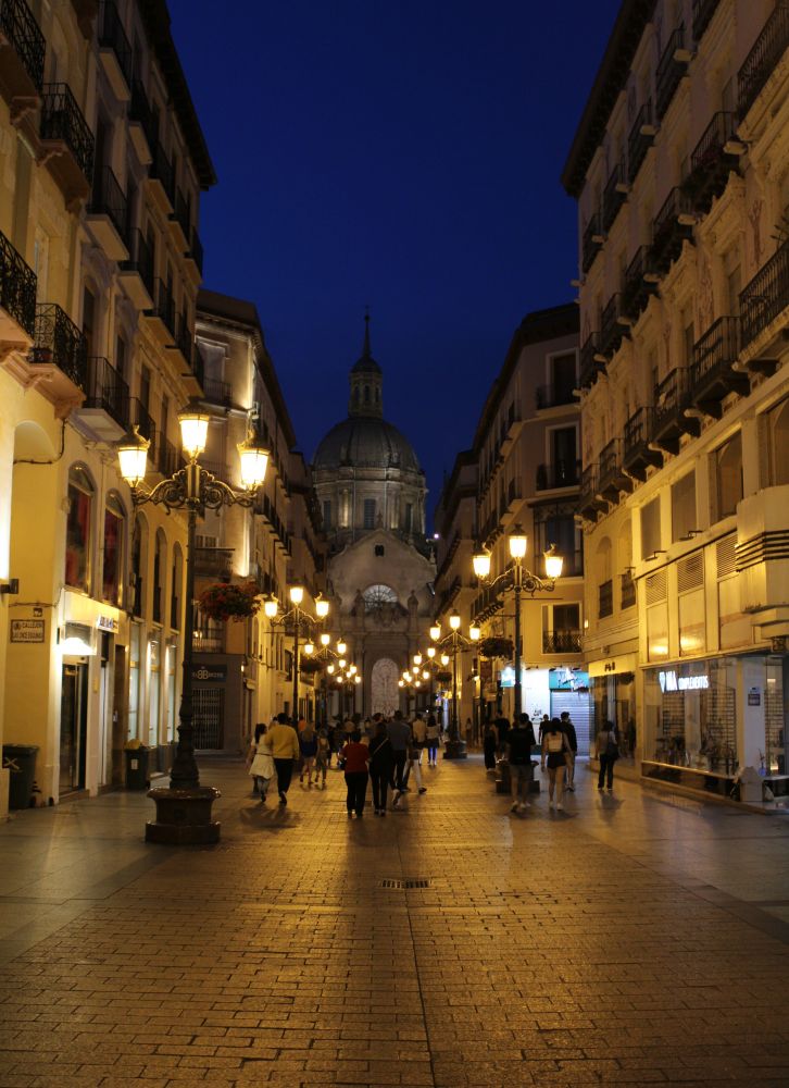 天很快暗了下来,夕阳之辉演变成了灯光影照。在灯光的影照下,皮拉尔大教堂更显现出了一种神秘的辉煌感。