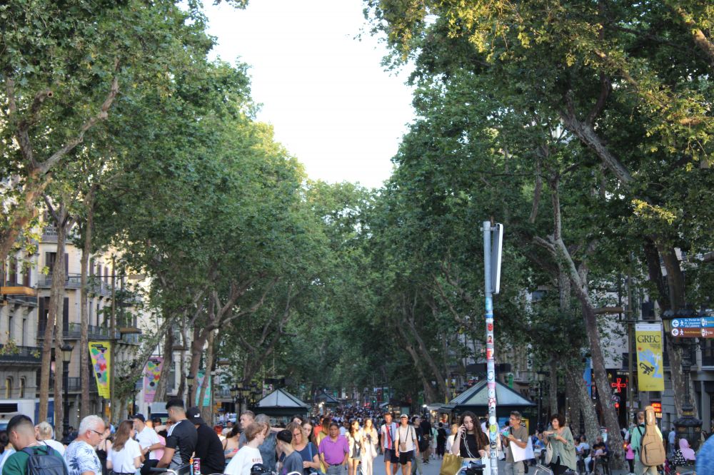 兰布拉大道 (La Rambla)是巴塞罗那著名的步行商业街,位于市中心加泰罗尼亚广场南侧,这里非常热闹,街两旁,你会看到各式风格的摊位。一直往前走,大道终点就到哥伦布纪念广场,并临海边港口。