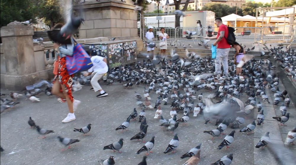 加泰罗尼亚广场是兰布拉大道的起始端,这里的鸽子占据了一大块地盘。此图仅为一角。