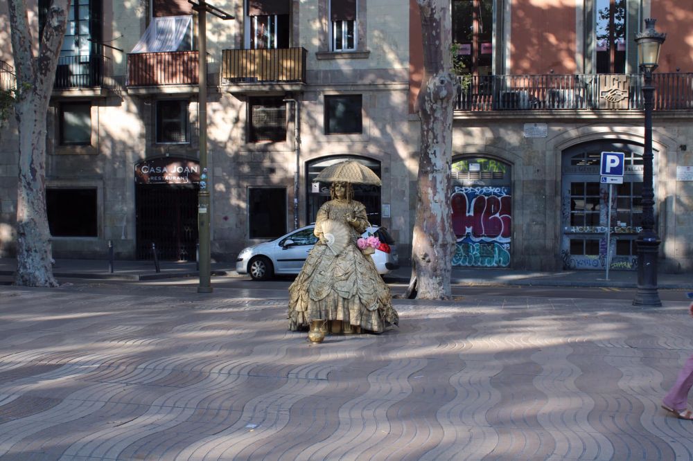 兰布拉大道上的活人塑像,期待游人的施舍。