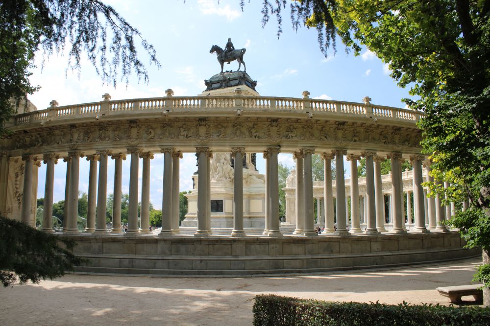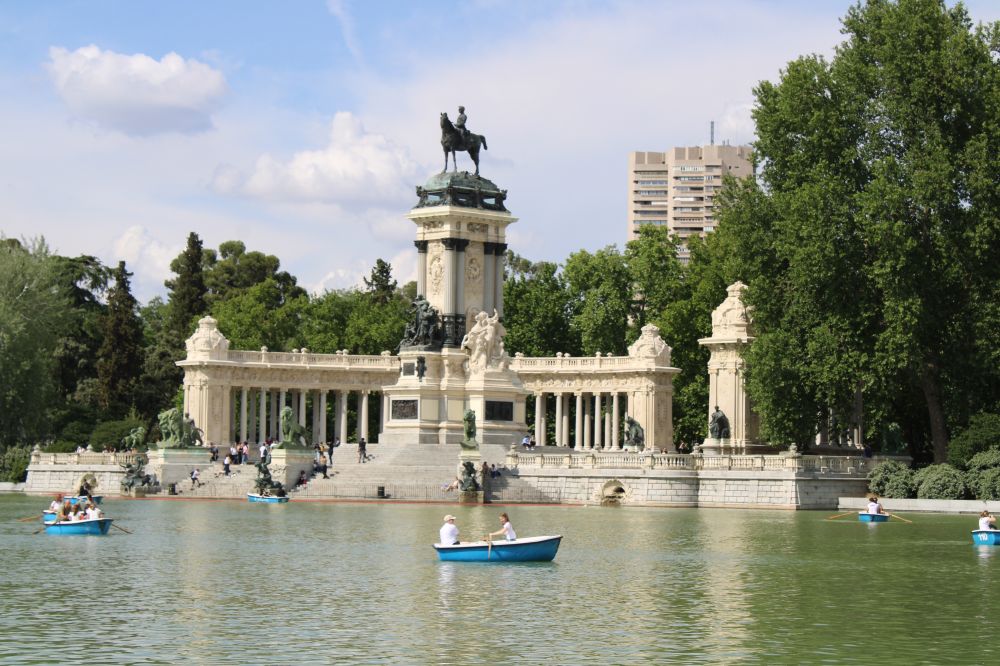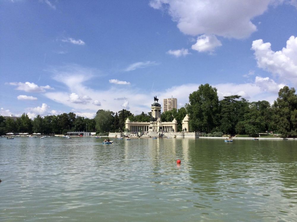 进入市区时,交通突然变得非常拥挤,好似洛山矶。可能刚好是下班时间吧。车行市区不久,看见前面有车祸发生。一到马德里,交通拥挤,又看到车祸。来前对马德里的憧憬,一下好像就给挡了回去。不过第二天的马德里市中心地带的行遊,立马感受到了马德里的艺术氛围与魅力。随街可见的古老气派的欧式建筑,历史上大师级艺术家们的雕像,如浪漫派画家戈雅Goya 的雕像等。不经意逛到一个公园,进去一看,好家伙这完全像一个艺术与休闲相结合的大众乐园。湖畔里,人们划着船浆。岸边年青人随意躺在草地上,沐浴着初夏的阳光。公园里有好几座个人雕像。由于不识西班牙语,无法确认这些雕像的人物。不远处还有各式风格的画展。件件油画,都颇有感染力。