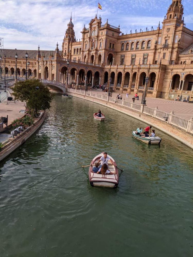 这里也有西班牙广场,它不在大街上,而是位于玛丽亚路·易莎公园内,呈半月型的广场建筑,由塔楼,正面主楼,弯形走廊组成,形成了一个对称的半月型(可惜无法拍下整个半月型全景),非常吸引眼球。场内拱挢渠道,游人划船戏水。我们还在广场里欣赏到了当地的民间艺人的弗拉门戈舞,据说舞者是吉普赛人。并录下了她们热情奔放的舞姿。准备过段时间整理后,搬上邮管。