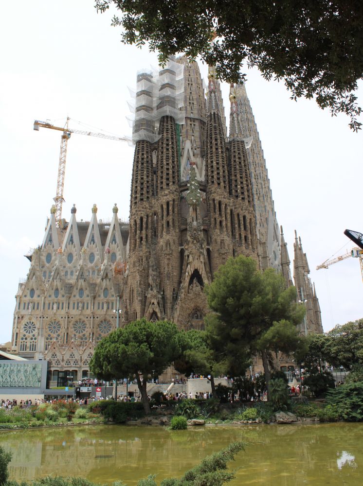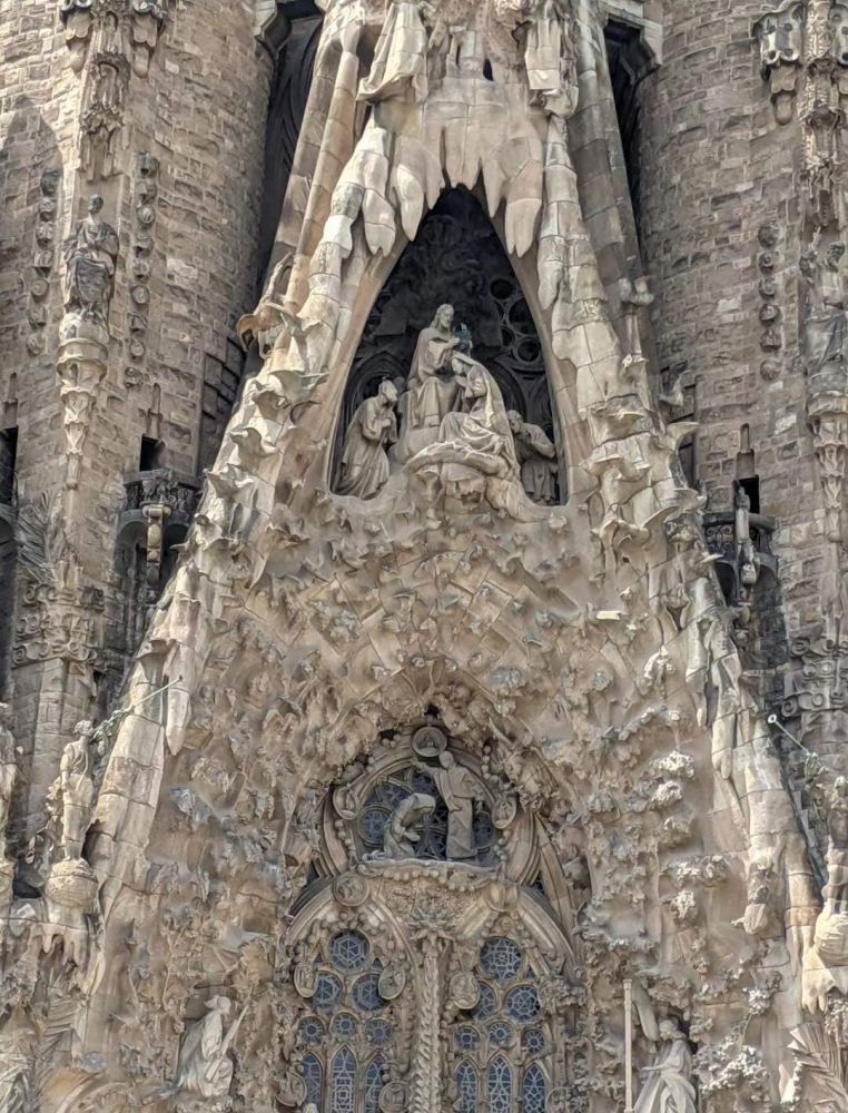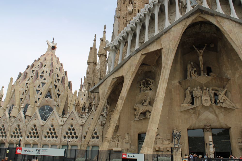 圣家堂(Sagrada Familia),以圣经为题材的高大尚建筑,由许多尖塔和楼台组成的教堂群体,加泰罗尼亚著名建筑家高迪的杰作。始建于1884年。一共有三个立面——“诞生立面”、“受难立面”、“荣耀立面”;有十八座高塔,分别代表十二宗徒、圣母玛利亚、《圣经》中的四大圣使、基督耶稣。不知道高迪设计出这么一个庞然大物,其初衷是为了使信众崇拜神时,会更虔诚,还是会更崇拜他精湛的设计和超凡的想像力呢?从现实来看,圣家堂穿梭不息来自世界各地的游客, 是来仰叹这个高大奇异的建筑作品,而非神。因此,高迪的天才作品,客观来讲不是吸引人们来崇拜神,而是演变成了崇拜高迪本人了。