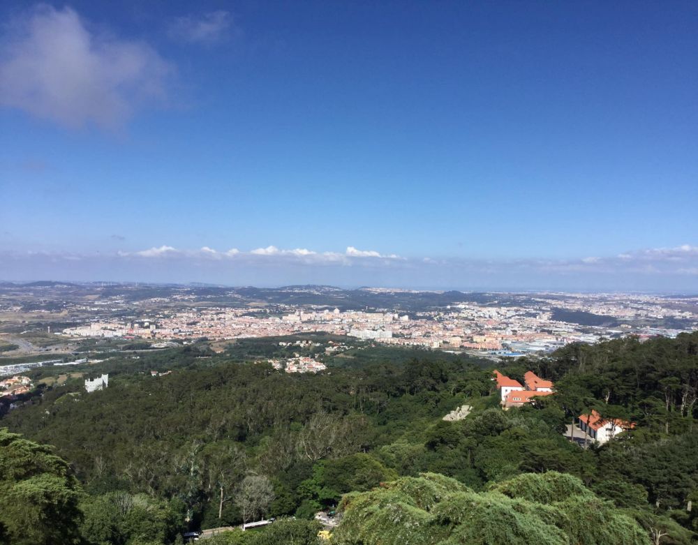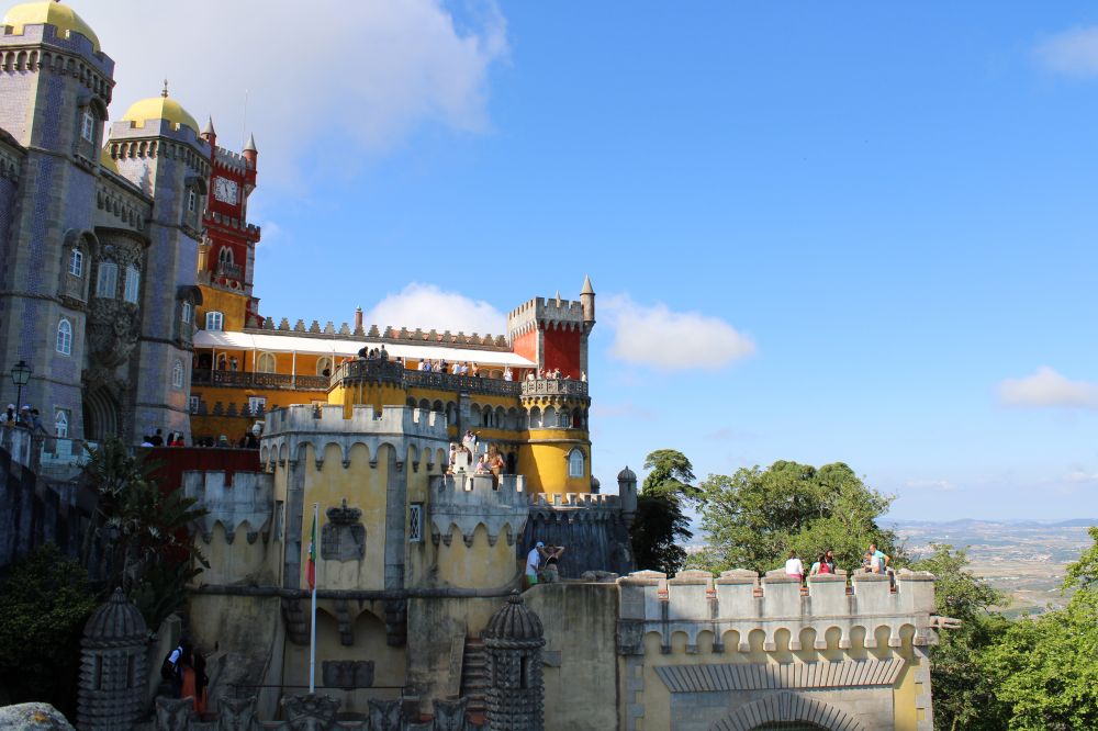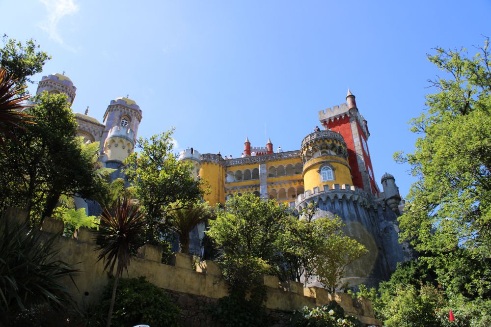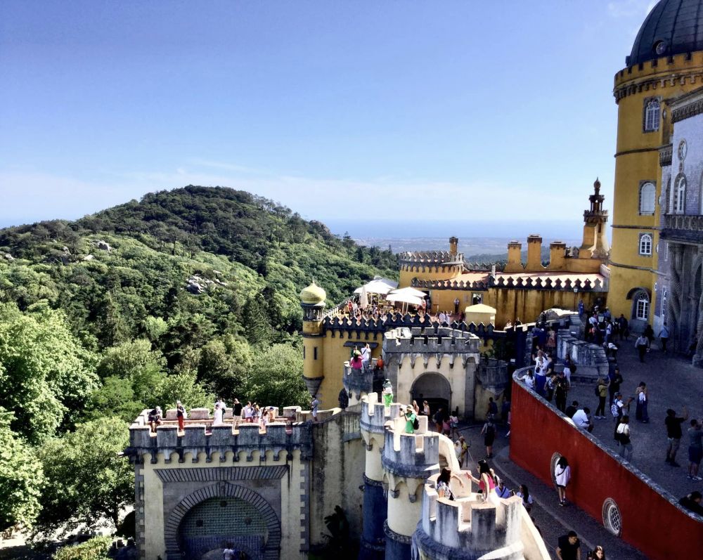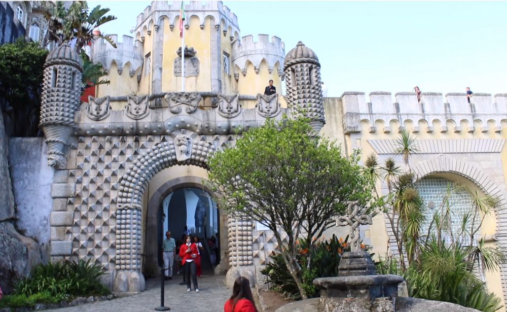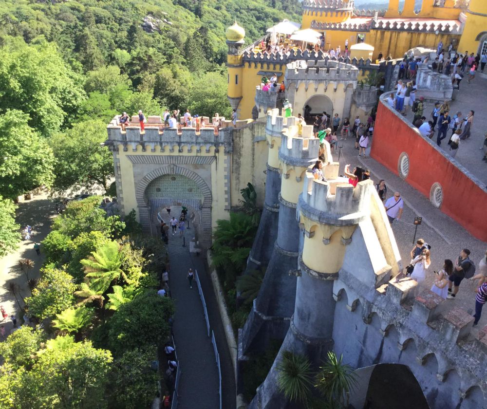 曾经是葡萄牙皇室夏日度假的一座宫殿,建在里斯本郊外30公里外辛特拉小镇(Sintra) 的山丘上。我们坐火车从里斯本的Rossio站到达辛特拉。然后搭剩当地的旅游大巴,蜿蜒爬行了一阵山路,才到达宫殿的山脚下,先买门票,进去后, 还要爬二十分钟的山路。气喘吁吁地到了,还得等票上的参观时间(不能晚到)。人真多,每半小时放行该时间段的游客进去参观。我们又等了半小时左右,才进入参观到了皇宫。