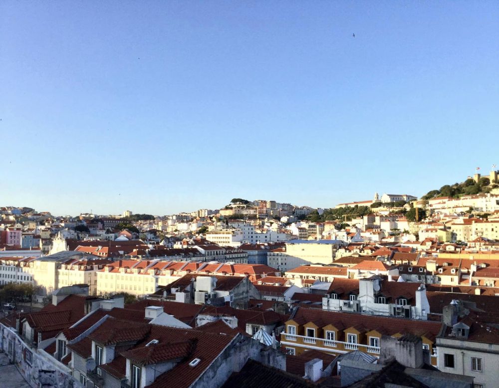 拜萨区是里斯本市区的中心地带,以两个大广场为标志,里斯本商业广场(Commerce Square of Lisbon)和罗西欧(Rossio)广场。另外该区的火车站也是一个标志物,叫Rossio Train Station。巧的是这个中心区域附近的地铁站也叫Rossio。看,广场,火车站与地铁站全是以Rossio命名。所以如果你第一次去里斯本遊,无论什么交通工具,你只需记住Rossio,就可到达主城区,欣赏到里斯本城中的要景。同时,这里也是里斯本最商业的区域之一。如果想吃美食、逛街购物,拜萨区也是很好的去处。所有这一切,其实让我印象最难忘的是,走到高处一眼望去,全区屋顶一片的橘红色。这样的景象才真正是里斯本的独特,也是其它欧洲国家难以看到的: