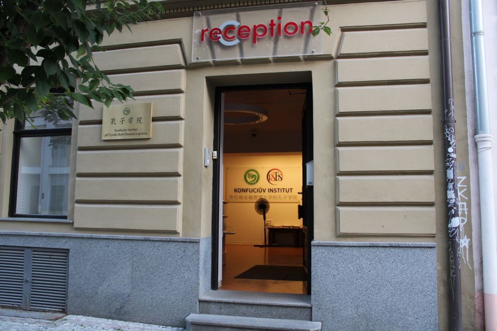 天还未黑尽,路人稀少。走着走着,居然在一个房门上还看到了孔子学院的招牌。门开着,却不见人影。过一会儿,一个西人老头出现在门口,张望了一阵,然后就把门关上了。