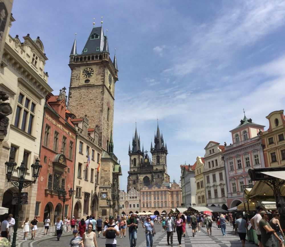 午后我们才正式迈向老城区参观游玩。从火药塔开始,穿过或饶过它,一直向西行游。布拉格老城区的魅力与魔幻式的人文景观渐次地展现在我们面前,好像在观看一部精彩的电影,一个高潮接着一个高潮,让我们目不遐接,直到夜幕降临。