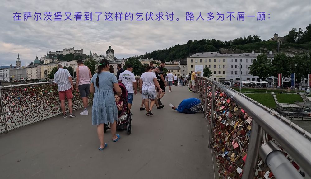 到了傍晚,天气转阴。萨市开始热闹了起来,游人如织,随时可碰到街坊的音乐演奏。当然目的主要是为了讨游人赏点小钱。遗憾没有时间参观“音乐之声”拍摄场, 就留给下次吧。