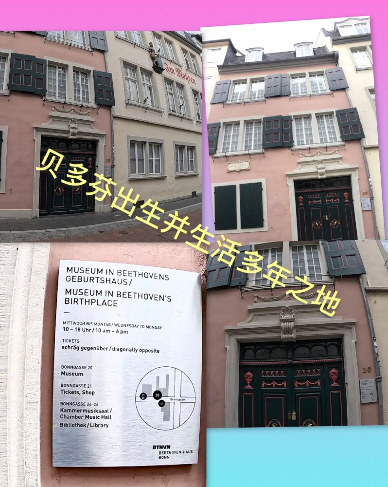 在街上问贝多芬的故居,居然没有人能说得具体,但都指向同一条街往前走。感觉该到了,问迎面走来的两个印度人,他们说得倒回去两条街右边就是。问他们从哪里来?答汉堡。原来他们也是访客,却比当地人更了解贝多芬的故居。于是我们往回走两条街并右转,终于找到了欠多芬的出生地与故居。时间已晚,没有进得室内参观一番。仅在外面拍照留念。贝多芬出生在这幢楼房,并住到他22岁离开。