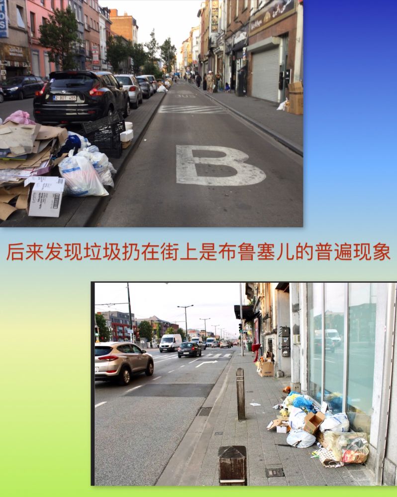 微观的我们到达布鲁塞尔头一天的下午黄昏时分,闲逛中到了老城区。街道窄,黑人多,路道也脏。简直像是进入了第三世界国家。 布鲁塞尔还有这等落后的区域?百货店一家挨着一家,却没有客人,生意怎么做?还看到几家华人办的百货与超市。一问店里的华人,原来这些百货店都是搞批发的。那个区域的批发店,一家挨着一家,满街都是。还有垃圾都是堆在店外或家外的街边,而不是放入垃圾桶里。真是坐实了“脏、乱、差”的印象。这种景观,我连摄影照像的兴致全无了。现在想起来,还是应该拍一段视频这种“第三世界”的街况,以作实凭。
