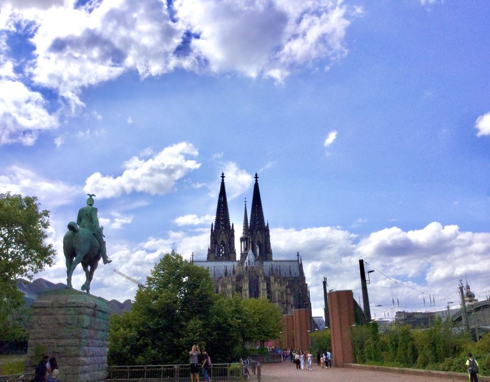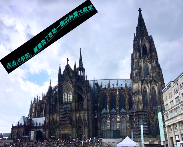 到了科隆火车站,一出站立马看到闻名天下的科隆大教堂,黑黑的,像是被烟熏过的,上面有很多雕刻的图案和装饰,细看很有层次感。科隆大教堂确实硕大挺拨,它的黑色的外装更增添了它的历史性的苍殇感。把火车总站建在其旁,就是好让来自世界各地的游客一下火车就能立马感受到科隆宏伟的历史气息?