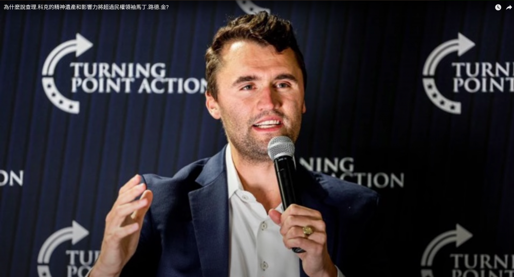 每次看保守派的集会,听与会者的各种发言,我的灵魂都能会与他们共鸣。我平时并不参加任何政治活动,但却喜欢看网络上保守人群的集会,说明我的价值观与保守价值观相吻合。因此那次听了查理的讲话,对他印象特别深刻,预感他会在今后有更大的作为。后来也逐渐知道他在很年轻的时候,就创办了“转折点”组织。