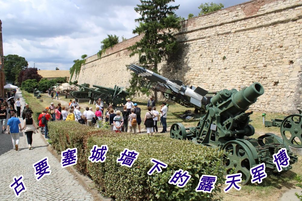 步行街的末端,就到了城堡公园的入口处。进入公园一段距离,来到城堡墙边。哇,墙边的走廊居然是一个露天军事博物馆。当时有几分惊奇, 这样设计的露天军博,倒是有些新颖,观赏性也较强。而且摆在旧城堡的墙下,好像这些武器正守卫着这个古老的城堡。