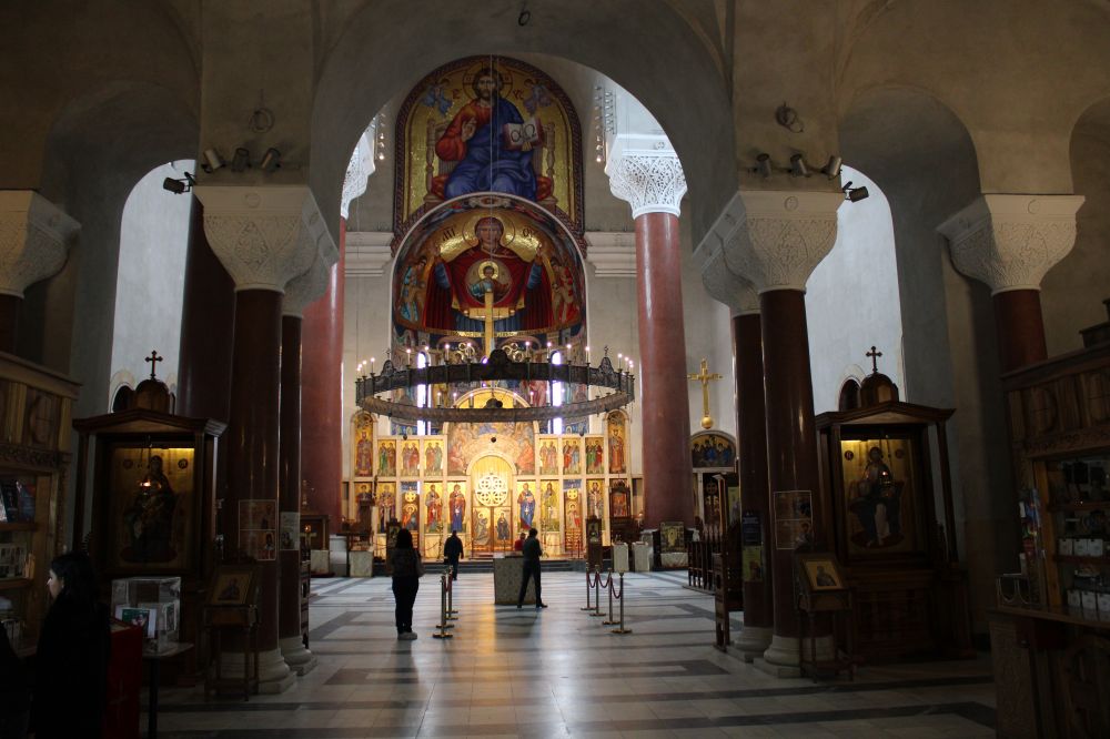 雨中路过东正教大教堂,进去参观了一会儿。里面的装饰与彩绘,算得上少有的了。离开大教堂,不一会儿又来到总统府前。那个出租车司机口中的腐败总统就在这里办公。前面一百多米,有铁栅栏,周围有警察巡逻。