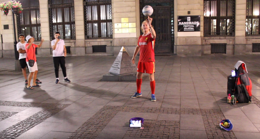 贝城的气候一天三变。我们第一天的游玩,就领教到了。上午炎热,下午暴雨大风加冰雹,到了傍晚,雨已停,热消退,好舒适凉爽。于是夜逛步行街,比白天还热闹。有两个女青年,一个唱歌,一个拉小提琴,再配上其它音乐。吸引了一大堆行人。我们虽然听不懂,但能感受到歌声的流畅舒情,整个场面扬溢出了较強的艺术感染力。我站前面专心录视频,当歌声结束时,一阵掌声,我才发现周围已有二三十人围观了。自然有很多人上前捐钱,我们也捐了一点。来欧洲好几次了,这还是第一次看到艺术水准如此高的街边表演。过了一会儿,又看到一个老头放着音乐玩足球表演,把球玩得团团转。看得出年轻时,是个足球俱乐部的队员。由于是个老头,围观的人较少,捐钱的人更少了。还有其它的乐器表演,水平一般,沒再驻足观看。