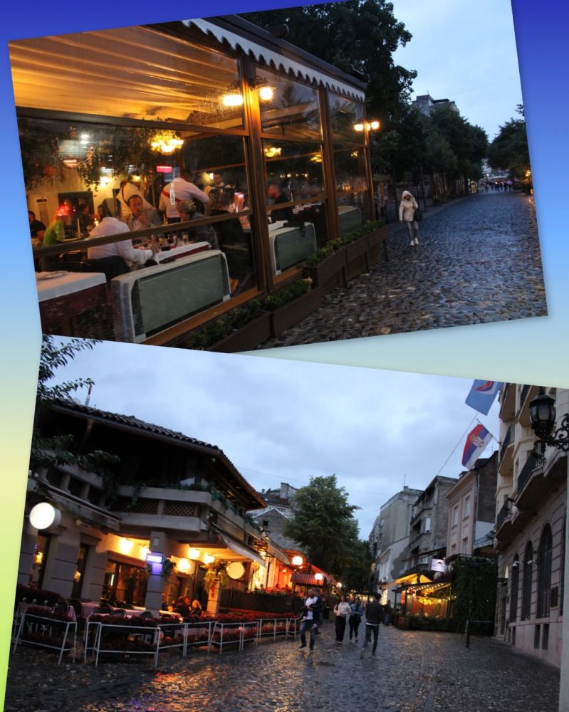 贝城有条名街,叫Skadarlija。据当地人说,这一带相当于巴黎的蒙马特,曾经艺术家云集。街道两旁大部分是19世纪的建筑。它是一条坡街,路面嵌铺的大鹅卵石,走在上面,有种脚疗的感觉。长约两百米左右,老式歺馆比邻相接,因此,也有人叫它为好吃街。这里上午非常安静,晚上却完全变成另一番景象,音乐演奏声此起彼伏,不同餐馆都有乐手来招揽顾客,非常迷人的夜晚,并营业到天际发亮。可见其夜生活的热闹度。