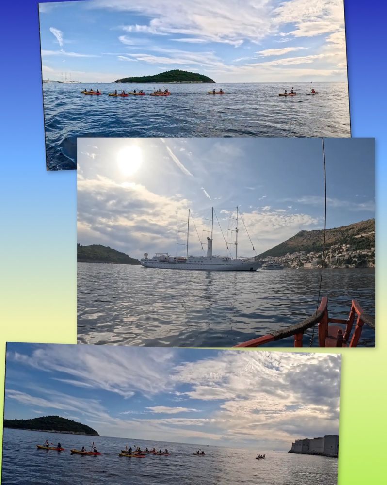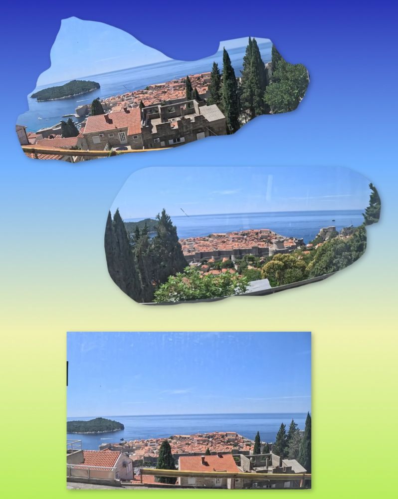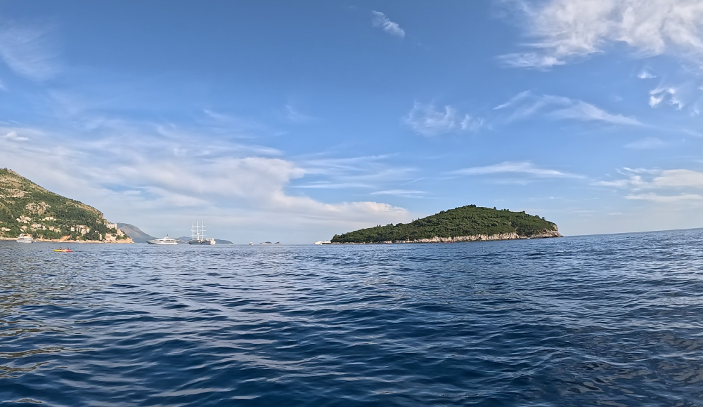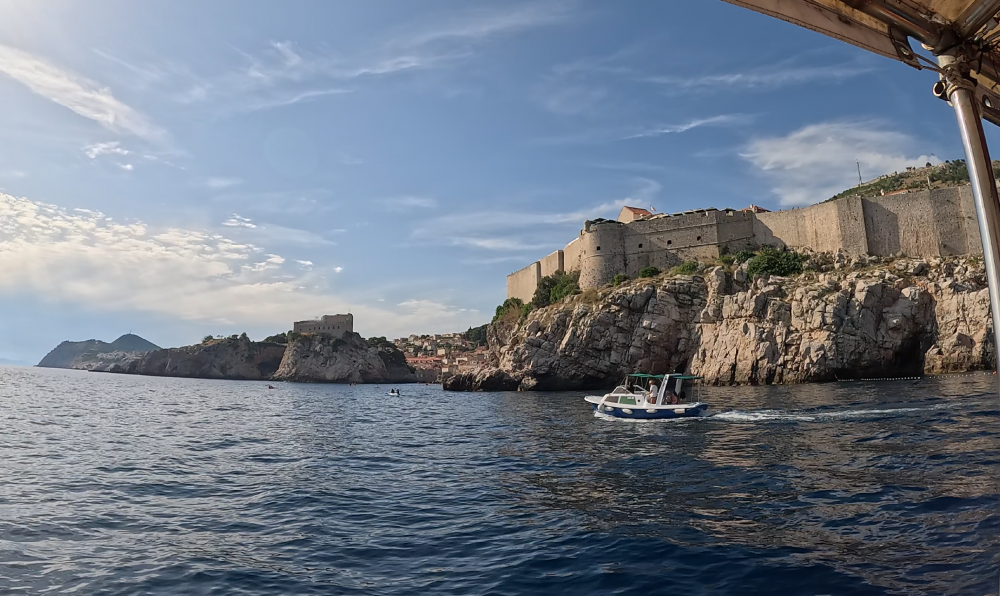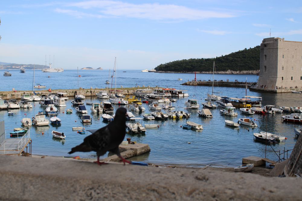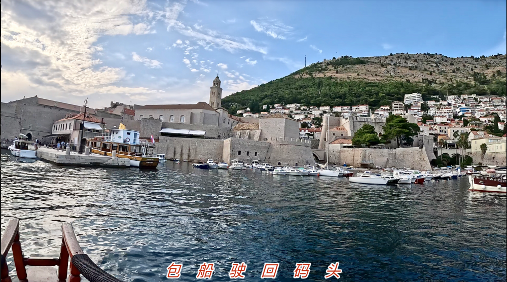 渐渐地海岸线低了下去,原来海岸线的车道慢慢变成了海岸上的山道。窗外是海,车下是山,车窗外的海景不停地随风掠过。两小时多后,当车驶入克罗地亚境内不久,窗外的海岸景像突然显得亮丽耀眼起来。海岸边停泊着各式船舟,不时有小划艇在水里奔驰,溅出线带般的浪花,还有几个星落岛屿的点缀,及大片大片的红瓦房屋的出现。罕见的画面,美不胜收。知道杜市就在脚底下了。十几分钟后,车绕道下山到达了目的地。