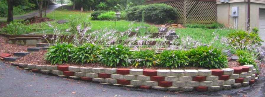 南院之东为一个大坡。为了防止水土流失,淹盖我们的后院停车场,我们约于十年前自行设计和自行修建了“一墙。”