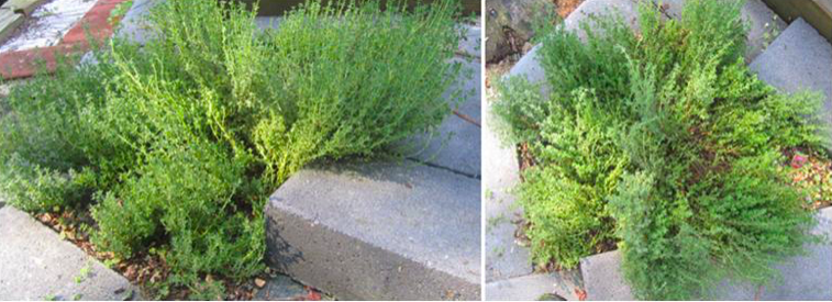 迷迭香本是我们的老朋友了。早在弗吉尼亚的院子里就成功种植丰收过。岂料移植到马里兰的院子约两年后,不幸死去。今年又重新再种,眼下长势十分喜人。我们做西餐的炒土豆或腌制烧烤羊肉等时必用。