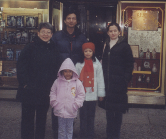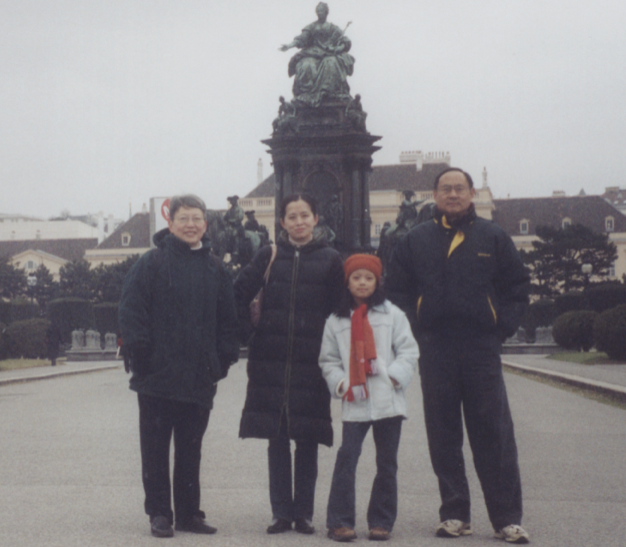 与俞萍和女儿倩倩在议会广场上