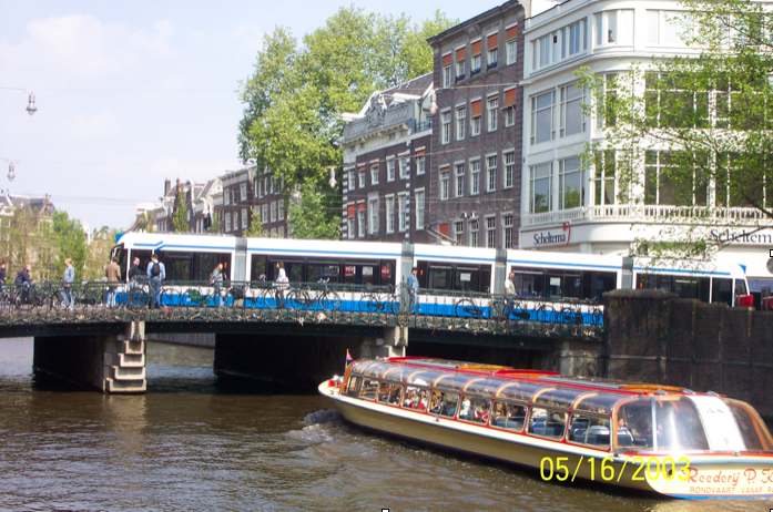 从华盛顿飞欧洲已经是我们很熟悉的路程了。一般都是下午五点左右启程,第二天早晨到达的。这次去阿姆斯特丹也是一样,应该五点半起飞,第二天早晨7点到,但起飞时机场上空电闪雷鸣地下大雨,让我们在飞机上等了二个小时。机场的安检还是很严,托运行李时等了有一个小时,所有的大件行李都要过扫描,象查身体一样的切片透视机。梦华被抽出来单独查,脱鞋,翻口袋,机器仍然吱吱叫,结果在裤子口袋里找出一张口香糖的锡纸才作罢。飞机飞行7小时,再加6小时时差,早晨8点到达。