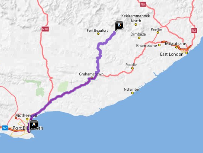 伊丽莎白港(A)到野猪背和黑尔堡(B)的路线