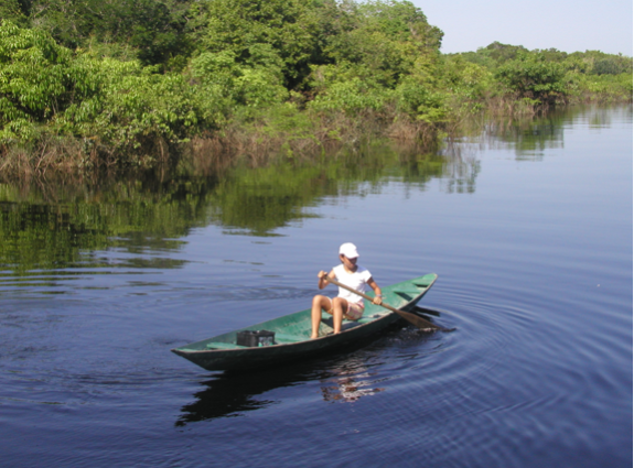 人运气好,钓上三条食肉鱼,梦华和丫丫一无所获。想想有点后怕,就在下杆钓鱼的地方,前天我们还游泳、扎猛子呢。丫丫一人划船划得很好,周围是那么静,整个亚马逊河好像都是我们的。午饭的下酒菜就是那三条鱼。