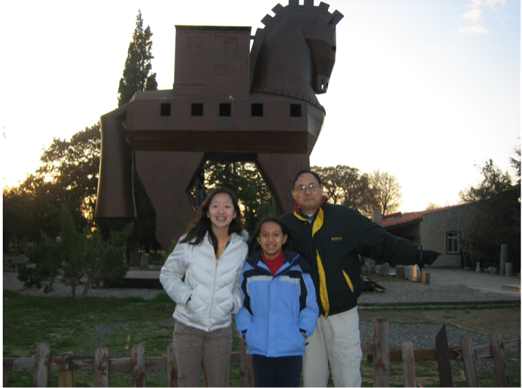 我们在特洛伊博物馆关门前进去参观,博物馆规模不大,陈列的文物寥寥无几,但是那座后人凭想象做的木马很吸引人,我们都爬了上去。