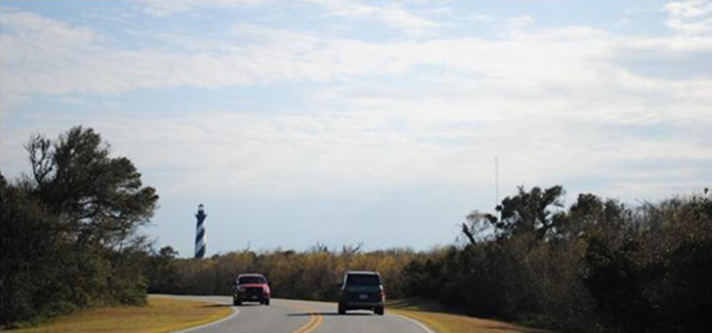 北卡的东部沿海有一系列狭长的岛屿叫外滩(Outer Banks)。有一条公路桥可以直达岛屿的中部,我们没有走这条路。我们在第三天一早,开了四个小时的车,来到北卡的南部的天鹅码头(Swan Quarter Ferry)。然后乘轮渡两个半小时,来到外滩的南端。这是复活节的周末,天气暖和,来度假的人很多。但多数人是走公路桥来的,乘轮渡比较费时间。我们的轮渡并没有客满,只有二十多辆车。一辆车不管多少人,只收十五元。我们怎么算他们也赚不到钱,可能是靠州政府补贴。